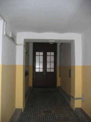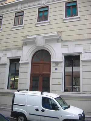 Facciata bipartita orizzontalmente, con zoccolo in pietra bianca naturale modanata e basamento rifinito ad intonaco grigio chiaro in bugnato liscio a fasce fino alla cornice marcapiano del solaio di secondo piano; fascia superiore su toni albicocca ad intonaco liscio. Apertura ad arco a tutto sesto nel portone centrale, aperture rettangolari per le rimanenti porte e finestre a pianterreno e per tutte le finestre ai piani superiori. Portone centrale con cornice in pietra, archivolto a ghiera e concio di chiave a rilievo incastonato nell'architrave modanato superiore: ad altezza delle reni, cornice modanata in pietra di collegamento con le altre aperture di piano terra; aperture laterali con lavorazione liscia in aggetto delle piattabande e delle chiavi di volta, più elaborata sui due portoni laterali, sovrastati da oculi ciechi inclusi in cornici modanate. Fori architettonici dotati a tutti i piani di davanzali in pietra spessa, diversamente lavorati a seconda del livello di piano, ed inquadrati dal primo al quarto piano in cornici di pietra bianca naturale con differenziazione decorativa al secondo e terzo piano tra fori centrali e fori laterali. Al primo piano fori finestra con chiavi di volta architravate, incluse in cornice con fregio a riquadri sottostante il marcapiano. Al secondo piano architravi modanate, sovrastanti testa femminile Liberty, a volute e festoni in corrispondenza delle finestre centrali e nelle laterali ornate da elemento aggettante; fori finestra collegati da fascia decorativa a festoni vegetali. Al terzo piano fori finestra uniti da cornice con fregio a conchiglie. Nelle finestre centrali, specchiatura inferiore con ghirlanda inclusa in motivo geometrico e piattabanda superiore a conci in rilievo con chiave di volta diamantata inclusa in architrave sorretto da mensoline a voluta scanalate; nelle finestre laterali, architrave più alto, sostenuto da cornice con fregio a palmette e specchiatura. Architrave sovrastato da pennacchi e sostenuto da cornice ad ovuli al quarto piano. Al quinto ed ultimo piano, fori finestra collegati da fregio a motivi vegetali intrecciati, con mensole a voluta decorate che s'inseriscono nella cornice ad ovuli sottostante la banchina liscia di sottotetto. Serramento del portone principale in legno massello verniciato di marrone, a due ante e due specchiature, con parte vetrata protetta da inferriata verniciata scura, tamponamento superiore a due specchiature ligneo e sopraluce vetrata in telaio sempre ligneo; a sinistra del portone principale, esercizio commerciale con serramenti lignei verniciati di blu, a due ante e due specchiature e con sopraluce sulla porta; a destra, palestra con analoghi serramenti alle finestre ma verniciati di scuro, e serramento della porta d'accesso sostituito in alluminio scuro nella seconda metà del secolo XX. Ai piani superiori, serramenti esterni tutti della medesima tipologia, in legno verniciato marrone, a due ante con sopraluce unico; individuabili due tipologie per i serramenti interni, sempre lignei, o bianchi a due ante e tre specchiature, o a due ante marrone chiaro. Grondaia metallica verniciata di marrone, come i due pluviali laterali rientranti nella muratura ad altezza della cornice marcapiano. Atrio d'ingresso con pavimentazione presumibilmente non originale in piastrelle di cemento e fasce laterali originarie in pietra d'Aurisina bocciardata; superfici rifinite ad intonaco di colore bianco con fascia inferiore giallo chiaro, paraste in aggetto. Cavedi con pareti intonacate di giallo chiaro e quattro pluviali metallici; fori architettonici provvisti di sola protezione dalle intemperie con serramenti delle abitazioni omogeneamente sostituti nella seconda metà del secolo XX in alluminio verniciato, bianco per i serramenti interni e marrone per gli scuri; alluminio verniciato marrone anche per le finestre del vano scale, protette al pianterreno da grata metallica originaria verniciata di verde, e alluminio verniciato bianco per i serramenti della palestra. Portone interno d'accesso al vano scala e alle abitazioni con serramento originale in legno massello verniciato di marrone, a tre ante e due specchiature, con modanatura superiore e parti vetrate decorate da lavoro in ferro battuto. Scale con gradini in pietra d'Aurisina modanata, corrimano in legno e parapetto originale in ferro battuto verniciato nero, con elementi tortili alternati a lisci decorati da medaglione e fiore centrale. Pavimentazione dei ripiani scala e delle altre parti comuni in marmette colorate, a pianoterra profilata da piastrelle nere lungo il perimetro dei muri del disimpegno. Serranti originali d'accesso alle abitazioni in legno massello verniciato di marrone, tutti omogeneamente conservati.