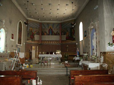 STATUE (interno) L'immagine della Madonna orna l'altare sul lato sinistro, mentre la statua di San Giusto, portata dalla cattedrale triestina, è collocata simmetricamente sull'altare destro. AFFRESCO (interno) Una decorazione a tempera, opera dell'artista Tone Kralj, raffigura l'ultima cena sulla parte alta della parete di fondo dell'abside.