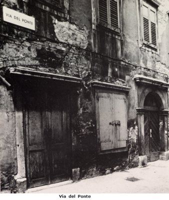 L'edificio sorge all'interno della zona più antica di Trieste, Cittavecchia, modificata negli anni Trenta del Novecento da pesanti interventi avviati con il progetto di sistemazione del colle di San Giusto. Tra gli immobili risparmiati dalle demolizioni rientra l'edificio con affaccio su Via del Ponte, occupato al piano terra da un locale commerciale e ai piani superiori da abitazioni. In linea con l'antica tipologia architettonica del borgo, la struttura presenta fori finestra e bassi portali ad arco arricchiti da cornici lineari in pietra bianca d'Aurisina e capitelli. Il portale centrale si caratterizza per la presenza di piedritti a piani lisci con dadi d'imposta sporgenti e capitelli modanati; ai lati si aprono tre fori arricchiti da cornici in pietra bianca. Al 1872 risale un primo progetto di modifica sull'immobile che prevedeva l'aggiunta di un quarto piano, come testimonia la presenza in facciata di una cornice marcapiano in pietra. Un successivo piano di recupero interessò, tra il 1984 ed il 1985, l'intero isolato, sottoposto al "Piano di Recupero" con L 457 del 1978; gli interventi realizzati sull'edificio a firma dell'architetto Franco Stagni, sono stati indirizzati, in particolare, al restauro degli elementi architettonici esterni e alla ricostruzione delle chiostrine interne preesistenti, mantenendo la scala a chiocciola nella posizione originaria.