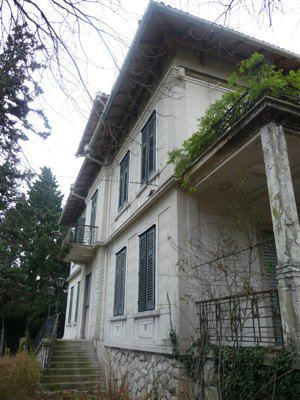 La villa si colloca all'interno dell'abitato di Opicina, esteso sull'altopiano carsico e interessato fin dall'Ottocento da un intenso sviluppo edilizio, cui risale, in particolare, la diffusione di numerose residenze di villeggiatura estiva. Il complesso in esame occupa un'ampia area verde prospiciente via dell'Ermada, parallela a via Nazionale, già Strada per Vienna, che in origine collegava Trieste alla capitale dell'Impero. Con l'aprirsi del nuovo secolo si assiste al miglioramento di alcuni servizi per gli abitanti, quali, dal 1904, l'illuminazione a gas, seguita dalla nuova linea tramviaria, da una scuola e nello stesso periodo dalla fondazione della "Società di abbellimento opicinese". Già nel 1909, il quotidiano cittadino descrive le virtù della località, "stazione climatica per diritto di natura ... punto di vista di straordinaria bellezza... luogo di soggiorno e luogo di salute". All'interno dello sviluppo edilizio del centro di villeggiatura si inserisce la realizzazione del complesso in esame. Il progetto della "villa di proprietà di Giorgio Hidl" reca il timbro dell'impresa di costruzione Goebel e Forti e la data 25 ottobre 1910; la pratica di approvazione da parte del Magistrato Civico include anche il disegno originale dell'impianto di riscaldamento commissionato ad un tecnico di Graz. Analogo per tipologia architettonica a coevi villini della zona, l'edificio, sviluppato su tre piani, si caratterizza per la presenza di un corpo a torre e di una scalinata d'ingresso a doppia rampa; peculiare risulta la veranda, aperta sul prospetto destro, arricchita da una pensilina in ghisa con lampioncino, e da decorate vetrate, disposte su due lati, mentre sulla superficie muraria emergono due altorilievi i cui temi rimandano, con ogni probabilità, all'attività commerciale del proprietario. La villa è circondata da un ampio giardino, che si estendeva anche oltre la divisione attualmente formata da una alta siepe, posta sul retro della villa, per comprendere una zona di servizio, in origine destinata a "stalla, rimessa e abitazione del cochiere", attualmente in cattivo stato di conservazione, non soggetta al provvedimento di vincolo esteso alla villa e al parco.