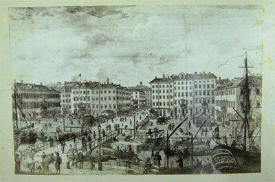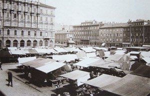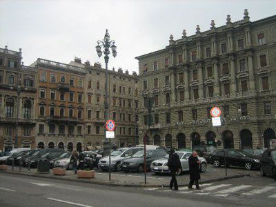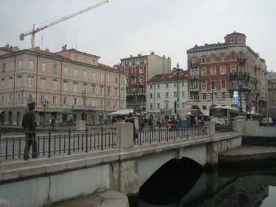 La zona delle antiche saline, a ponente delle mura della città medievale, demolite, per volere dell'imperatrice Maria Teresa d'Austria nel 1749, cominciò ad essere bonificata già a partire dagli inizi del XVIII secolo. Il progetto del suo totale interramento si concretizzò a metà del 1700, allorquando la sovrana cedette al Comune di Trieste i fondi su cui erigere la futura città che, in suo onore, fu chiamata "Teresiana". Il vasto terreno paludoso, nel suo tratto prospiciente il mare, era attraversato all'epoca da tre canali di diversa ampiezza: uno, detto del Vino o Piccolo, lungo un centinaio di metri ed interrato per motivi igienici nel 1816, si inoltrava dentro Piazza della Borsa spingendosi fino al cuore di Piazza Vecchia attraverso l'odierna Portizza. Uno medio, corrispondente, all'incirca, all'attuale canale che dalla chiesa di S. Antonio Nuovo conduceva fino al mare e che accoglieva le acque di due torrenti ed infine un terzo, più corto degli altri due. Tutti e tre questi canali erano accessibili alla navigazione di piccolo cabotaggio a servizio delle saline. Allorquando si stabilì di bonificare l'area, per permettere alla città di espandersi territorialmente in virtù della sua crescita demografica, si prese in considerazione il progetto di interrare il più piccolo allargando invece il medio, rendendolo agibile a bastimenti di stazza maggiore e conservando pure quello del Vino per imbarcazioni minori. Per ordine di Maria Teresa, il 14 ottobre 1756, il Canal Grande, l'unico, di fatto, rimasto, venne ampliato e dotato di sponde murate sotto la direzione dell'arch. Matteo Pirona al costo di 90.000 fiorini. Inizialmente lungo le sponde furono piantati degli alberi, successivamente tolti per probabili motivi di ordine pratico, intralciando, con la loro presenza, le operazioni di ormeggio nonché quelle di carico e scarico delle navi. Largo 28,4 metri, il corso d'acqua era attraversato da due ponti di ferro mobili: il cosiddetto Ponte Verde, all'imboccatura del canale, posizionato nel 1858 e il più noto Ponte Rosso, che metteva in comunicazione l'omonima piazza con l'allora Via delle Poste, collocato nel 1831 ed eseguito nelle officine dei fratelli Strudthoff in sostituzione di uno di legno di colore rosso appunto. L'enorme quantità di terra ricavata dall'ampliamento del canale servì invece da basamento per un terrapieno utilizzato per piccoli scambi commerciali in prossimità del ponte. Fu proprio quel terrapieno a trasformarsi nella futura Piazza del Ponte Rosso. Lo spazio fu regolarizzato e concepito nelle sue forme architettoniche da Gianantonio Tognana già nel 1776, derivando il suo appellativo proprio dal colore del ponte che costituiva il passaggio obbligato tra la città vecchia e quella nuova. La sua posizione strategica, prospiciente il punto di approdo delle navi e al crocevia di importanti vie di comunicazione, rese la piazza uno dei punti di incontro più dinamici dal punto di vista commerciale e mercantile, divenendo ben presto sede di un vivace mercato ortofrutticolo. Piazza del Ponterosso fu, sin dalla sua iniziale creazione, un'ampia piazza quadrangolare circondata da numerosi edifici di gran pregio architettonico, le cui prime registrazioni tavolari risalgono al 1789. Tagliata a metà dall'odierna Via Roma, lo spazio presenta sul lato a settentrione una fontana a tre bocche rappresentante una rupe sul cui vertice poggia un genio fluviatile. L'opera risale al 1751 su progetto dello scultore Francesco Mazzoleni, creatore della fontana dei Quattro Continenti di Piazza Unità d'Italia. Familiarmente nota come fontana del "Giovanin", in onore del puttino che la sormonta, la fontana attingeva l'acqua direttamente dall'acquedotto teresiano fatto costruire dall'imperatrice a metà del 1700 incanalando le acque provenienti dalle alture di S. Giovanni. Ingentilivano la piazza, non solo la fontana del Puttino, ma anche un chiosco in muratura e ferro destinato ad ospitare un corpo di guardia ed alcuni gabinetti pubblici in ghisa decorata. La regolazione della contrada del Canal Grande risale al 1821, allorquando l'Ufficio delle Civiche Fabbriche approvò il progetto di lastricazione dell'area. La pavimentazione, in grossi blocchi di masegno, venne disposta a spina di pesce nella zona centrale, a correre lungo il sedime delle strade. La struttura della piazza rimase invariata nella sua sostanza fino alla metà del XX secolo. Durante lo stravolgimento della viabilità stradale negli anni '50, l'antico lastricato venne, infatti, ricoperto con un manto di asfalto. Si colse allora l'occasione per interrare i servizi igienici. Sulla piazza fanno bella mostra di sé alcuni tra i più eleganti edifici triestini come, ad esempio, la monumentale sede della Banca Nazionale del Lavoro, insediatasi dal 1928 nell'edificio costruito per il commerciante Alessandro Genel nel 1873. Oppure gli edifici posti agli angoli con Via Roma: al numero civico 3, il palazzo opera di A. Bacicchi, risalente al 1882; al numero civico 4, il fabbricato noto con il nome di casa Allodi con la sua originale torretta ottagonale risalente al 1913, progettato dall'arch. O. Sonetti e che ospitò, durante gli anni Trenta, l'Hotel Centrale.
