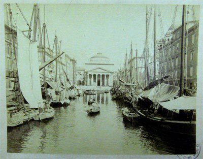 La zona delle antiche saline a ponente delle mura della città medievale, demolite, per volere dell'imperatrice Maria Teresa d'Austria nel 1749, cominciò ad essere bonificata già a partire dagli inizi del XVIII secolo concretizzando il progetto del suo totale interramento allorquando la sovrana cedette al Comune i fondi su cui erigere la futura città Teresiana. Il vasto terreno paludoso più vicino al mare era attraversato, all'epoca, da tre canali di diversa grandezza accessibili alla navigazione di piccolo cabotaggio messo a servizio delle saline: uno, detto del Vino o Piccolo, lungo un centinaio di metri interrato per motivi igienici nel 1816. Uno medio, corrispondente pressappoco all'attuale canale che dalla chiesa di S. Antonio Nuovo conduce fino al mare ed infine un terzo, più corto degli altri due. Quando si stabilì di bonificare l'area, si prese in considerazione il progetto di interrare il più piccolo, allargare il medio (rendendolo agibile ai bastimenti di stazza maggiore) e conservare il canale del Vino. Per ordine di Maria Teresa, il 14 ottobre 1756, il Canal Grande venne ampliato e dotato di una sponda murata sotto la direzione dell'architetto Matteo Pirona al costo di 90.000 fiorini. Inizialmente lungo le sponde furono piantati degli alberi, immantinente tolti per probabili motivi di ordine pratico, intralciando l'ormeggio dei bastimenti ed il transito delle merci. Largo 28,4 metri, il corso d'acqua era attraversato da due ponti di ferro mobili: il cosiddetto Ponte Verde e il più noto Ponte Rosso, che metteva in comunicazione l'omonima piazza con l'allora Via delle Poste. Nel 1769 venne eretta, nel tratto antistante la parte terminale del Canal Grande, una chiesa barocca dedicata a S. Antonio che, come ci ricorda il Generini, fu costruita con il "peculio di pii benefattori ad iniziativa dei fedeli dell'antica confraternita dei nobili addetta alla chiesa volgarmente nota per S. Antonio vecchio". Lo spazio compreso tra il nuovo fabbricato ed il canale prese quindi il nome di Piazza S. Antonio. La chiesa fu restaurata nel 1784 e, ritenuta non più consona alle mutate situazioni demografiche, fu demolita e sostituita, nel 1827, con l'attuale edificio progettato dall'architetto Pietro Nobile. Il nuovo tempio, consacrato dal vescovo Bartolomeo Legat, fu officiato per la prima volta il 3 aprile 1842, ma completato appena nel 1849. Allorquando i lavori di fabbricazione dell'edificio erano in fase di ultimazione, si decise di portare a termine anche il progetto di sostituzione del vecchio selciato nella parte antistante la chiesa. La lastricazione della Contrada di S. Antonio avvenne, infatti, in periodi successivi, tra il 1820 ed il 1835, allorquando tutta l'originaria pavimentazione della città venne sostituita con delle pietre più regolari ed ordinate. Nel 1820 Il Consiglio comunale aveva perfino avvallato un progetto di modifica delle ruote dei carri addetti al trasporto delle merci da un magazzino all'altro, di modo che la pavimentazione del nuovo lastricato non potesse esser compromessa. Nel 1824 il Comune decretò anche la costruzione di una ringhiera di ferro battuto da sistemarsi sulla testa del canale, proprio dirimpetto alla facciata della chiesa. Ma la demolizione del vecchio edificio e il notevole rallentamento dei lavori del nuovo, di fatto, condizionarono l'effettiva selciatura dell'area prospiciente la chiesa stessa che, ingombra delle travature di legno a protezione del nuovo fabbricato, impedirono per un bel pezzo la possibilità di posare le nuove pietre. Nel 1832 parte dei lavori dovevano però essere ultimati, se è vero che il Comune dovette fare espressa richiesta all'imprenditore Valentino Valle, responsabile della pavimentazione, di abbattere, sulla Piazza del Ponterosso, il casotto eretto per "comodo delli lavori da tagliapietre della nuova chiesa di S. Antonio, casotto lì da quasi 5 anni". Le "Condizioni d'incanto" del 1830, relative alla pavimentazione della piazza precisavano, inoltre, che le pietre del vecchio selciato non dovevano essere buttate via, ma trasportate fino al Borgo Giuseppino, sulla riva del mare, per "proseguire il nuovo quais". Nel 1934 si diedero avvio a quei lavori di interramento del canale che portarono Piazza S. Antonio ad assumere l'odierna fisionomia: una fontana centrale al posto dell'acqua e sei aiuole fiorite da contorno. Utilizzando il materiale proveniente dalle demolizioni di Cittavecchia, l'ultimo tratto dell'antico corso d'acqua piano piano scomparve. Il nuovo spazio che ne derivò prese il nome di Piazza Umberto I. Tra le curiosità degne di nota figura quella dell'interramento, all'interno del canale, di una torpediniera austriaca che, trovandosi lì ormeggiata da tempo e ormai fuori uso, venne ricoperta dal materiali di riporto, una volta adagiatasi su un fianco. Giace ora sotto la fontana, testimone silente di un passato ormai dimenticato. Dando le spalle alla chiesa, sul lato sinistro vale la pena di sottolineare la presenza di un altro edificio di interesse storico e sociale di non secondaria importanza: il Caffè Stella Polare. Nel 1900 a causa dei lavori di ristrutturazione della Casa della Comunità Serbo ortodossa, il Caffè, lì ospitato, venne chiuso, si pensò allora di erigere un fabbricato provvisorio, in cemento e legno, che fu ubicato proprio di fronte alla chiesa nello spazio davanti al canale. Ebbe forme secessioniste e durò alcuni anni sino all'inaugurazione del nuovo palazzo progettato dall'ingegner C. Cambiario nel 1902. Durante gli anni Quaranta e Cinquanta la piazza fu utilizzata come parcheggio autovetture.