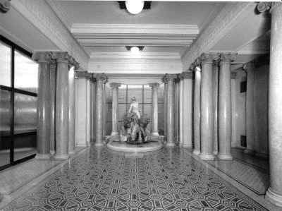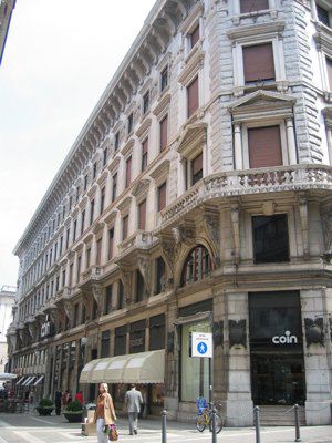 Il palazzo viene realizzato tra il 1909 ed il 1914 per ospitare la sede della Riunione Adriatica di Sicurtà su progetto degli architetti Ruggero ed Arduino Berlam. I problemi relativi all'ideazione dell'edificio sono abbastanza complessi: dalla scelta del terreno per la nuova sede, all'idea di bandire un concorso per il progetto fino alla realizzazione. Nel 1902 Adolfo de Frigyessy, direttore della Compagnia dal 1899, decide acquistare un'area centrale della città tra via Dante Alighieri, Santa Caterina, Corso Italia e piazza Nuova, oggi piazza della Repubblica. Sette anni dopo la società bandisce un concorso ad inviti per il progetto dell'edificio al quale partecipano dieci concorrenti; Ruggero ed Arduino Berlam si aggiudicano l'incarico con un disegno scenografico e monumentale arricchito da sculture e oggetti di design per l'allestimento interno. L'edificio viene arretrato di alcuni metri rispetto alle vecchie costruzioni permettendo una maggiore possibilità di lettura della struttura. Attualmente l'edificio ospita al pianterreno attività commerciali e uffici ai piani superiori.