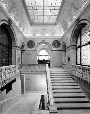 L'edificio, a pianta rettangolare, è costituito da cinque piani fuori terra. Affacci su Piazza della Repubblica, Corso Italia, Via Santa Caterina e Via Dante Alighieri. Le facciate del palazzo non sono unitarie, anche se presentano la medesima suddivisione della superficie muraria. L'accesso alla parte rappresentativa da piazza della Repubblica, con colonne, bronzi, stucchi, marmi variopinti, a testimoniare l'aderenza allo stile eclettico. Soprattutto l'assenza del bugnato per la parte inferiore sono ascrivibili a Ruggero Berlam, mentre gli ingressi laterali e lo scalone interno risultano più vicini al gusto di Arduino Berlam. L'ingresso principale è caratterizzato dal motivo a serliana, da cui si accede all'atrio voltato a botte, con decorazioni a cassettoni. Nella lunetta dell'arco d'ingresso sono collocate due statue raffiguranti le personificazioni di Pensiero ed Azione. Al di sopra emerge un balcone aggettante con parapetto a balaustre in pietra, su cui si apre una porta finestra affiancata da colonne binate sormontate dalle statue della Previdenza e Protezione. I balconi balaustrati sono sostenuti da mensoloni a voluta che arricchiscono anche lo sporto di linda, decorato da motivi floreali. La tripartizione del palazzo è rinascimentale con i lati brevi suddivisi in nove aperture caratterizzate da finestre architravate, timpanate e quadrate nella parte alta. Tutti i particolari sono realizzati in marmo del Carso, mentre le inferriate e le decorazioni in ferro battuto sono realizzate da un'importante ditta artigianale friulana. La ricchezza dei particolari si trova anche all'interno dell'edificio, in particolare, nel vano d'ingresso dominato da una fontana monumentale, raffigurante Nettuno, da mosaici, statue e colonne di gusto accademico.