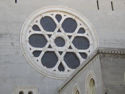 ELEMENTI ORNAMENTALI (esterno) Le facciate sono impreziosite da decorazioni incavate nella pietra con simboli geometrici e stilizzati, tratti dall'iconografia ebraica. ELEMENTI ORNAMENTALI (interno) All'interno le decorazioni sono rese in stucco a caldo ed intonaco con graffiti. ROSONI (esterno) Due grandi rosoni con motivo geometrico rappresentante la stella di David illuminano l'interno del tempio.