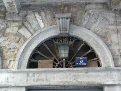 ELEMENTI ORNAMENTALI (esterno): Chiavi di volta in corrispondenza dei fori al piano terra, decorate da volute in pietra bianca (Pict0001.jpg). ISCRIZIONE (esterno): Al centro dell'architrave orizzontale in corrispondenza del foro centrale al piano terra (Pict0001.jpg), iscrizione parzialmente leggibile (forse "MACELLERIA"). ELEMENTI ORNAMENTALI (esterno): Inferriate in ferro battuto a protezione dei sopraluce del piano terra. In corrispondenza del sopraluce del foro centrale, lanternina in ferro battuto (Pict0001.jpg). ISCRIZIONE (esterno): In corrispondenza del sopraluce del foro centrale al piano terra, iscrizione recante la data 1851 (Pict0001.jpg).