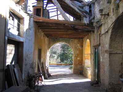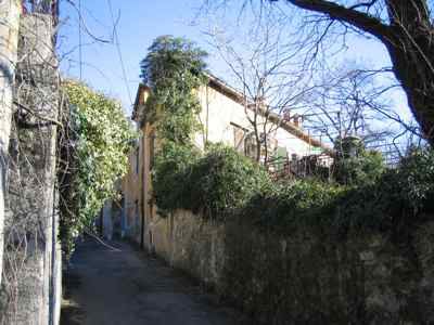 Il fabbricato si affaccia su Vicolo dei Roveri che, da Via Giulia, si diparte verso Nord seguendo l'iniziale pendio del monte Valerio. Presenta un affaccio su strada; il lotto è delimitato da un muro a secco. Fabbricato composto da tre corpi edilizi a due e tre livelli; l'accesso alle due ali laterali e al parco retrostante avviene attraverso un ampio portale. Strutture verticali in muratura portante di pietra arenaria mista a laterizio. Solai in travi lignee con interventi puntuali di consolidamento in profilo metallico. Copertura a falde inclinate con struttura lignea e manto di copertura in coppi curvi rossi. Fabbricato di campagna ottocentesco composto da più volumi.