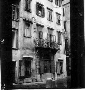 VOLUTE (esterno): Volute in pietra collocate in chiave di volta del portale principale e a sostegno del balcone soprastante. BALCONE (esterno): Balcone con parapetto in ferro battuto con decorazioni geometriche.