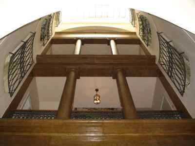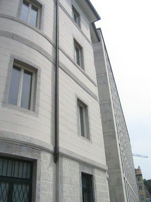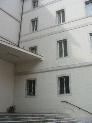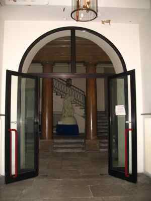 TARGA (esterno) lastra lapidea posta sul fronte interno verso il piazzale, recante incisa la scritta commemorativa "PIETRO NOBILE/ CAMPESTRO IN CANTON TICINO 10.10.1776 - VIENNA 7.11.1854/ DELL'ARCHITETTURA NEOCLASSICA TRIESTINA ARTEFICE/ CONSIGLIERE AULICO DELLE FABBRICHE/ DIRETTORE DELLA SCUOLA DI ARCHITETTURA A VIENNA/ NEL 150° ANNO DELLA MORTE/ LA SOCIETA' DI MINERVA IL COMUNE DI TRIESTE/ 7 NOVEMBRE 2004".