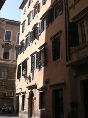 L'edificio sorge all'interno della zona più antica di Trieste, Cittavecchia, modificata negli anni Trenta del Novecento da pesanti interventi avviati con il progetto di sistemazione del colle di San Giusto. Tra gli immobili risparmiati dalle demolizioni rientra l'edificio con affaccio su Via del Ponte, occupato al piano terra da locali commerciali e ai piani superiori da abitazioni. In linea con l'antica tipologia architettonica del borgo, la struttura presenta fori finestra e bassi portali ad arco arricchiti da cornici lineari in pietra bianca d'Aurisina e capitelli. L'immobile, costruito all'angolo tra via del Ponte e Piazza Vecchia, presenta pianta rettangolare e due affacci. L'edificio si sviluppa per un'altezza di cinque livelli fuori terra. La facciata prospiciente via del Ponte è caratterizzata, al pianoterra, da un portale rinascimentale in pietra ad arco con elemento a voluta in chiave di volta e due portali rettangolari. Il lato su piazza Vecchia presenta due aperture d'ingresso rettangolari. Tutte le aperture dello stabile, ad eccezione di quelle dell'ultimo piano, sono coronate da architrave lineare. Alla fine dell'Ottocento l'immobile risulta di proprietà del commendatore Carlo de Porenta, che ne detiene il possesso fino al 1935 quando viene acquistato dal Comune di Trieste. Nel provvedimento di vincolo del 1935 si evidenzia il pregio del rostro in ferro battuto del portale d'ingresso, oggetto primario di tutela ed ora non più in loco. Solamente con la riconferma del vincolo, nel 1958, la tutela è stata estesa all'intero fabbricato. Con il "Piano di Recupero", L 457 del 1978, esteso all'intero isolato tra il 1984 ed il 1985, l'immobile è oggetto di importanti modifiche, a firma dell'architetto Franco Stagni, concernenti, in particolare, il restauro degli elementi architettonici esterni.