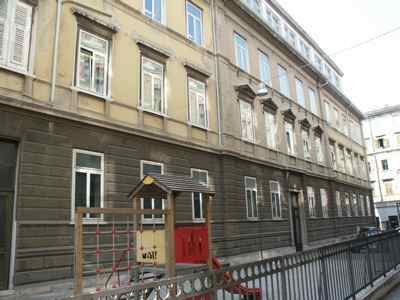 La "Civica Scuola Reale Superiore" di Trieste ebbe sede iniziale in via S. Lazzaro nell'edificio noto una volta come "Casa Muratti", ricordiamo infatti che fino al 1877 il Comune si era semplicemente limitato a prendere in affitto i locali, destinati all'uso scolastico, da persone private. Nel 1879 si vennero a realizzare però due presupposti di particolare importanza che costrinsero il Comune ad adottare una drastica quanto definitiva soluzione: viste le precarie condizioni architettoniche in cui verteva il presente fabbricato e l'eccessivo importo della pigione si decise, allo scadere del contratto di affitto nell'agosto del 1879, di costruire un apposito edificio su progetto dell'ing.Boara. L'iniziale cifra pattuita per l'erezione di uno stabile sul fondo comunale prospiciente via dell'Acquedotto venne ben presto superata arrivando a sfiorare la somma complessiva di 215,000 fiorini. L'elevato costo della scuola trovò la sua giustificazione nelle migliorie apportate al progetto originale: la pietra bianca anziché la malta per il bugnato dell'affaccio principale, il moderno impianto di acqua e gas e altre innovazioni. Sopra il pianterreno, dove trovarono ubicazione l'ufficio del direttore, la sala per le conferenze, i servizi e la biblioteca, si innalzarono altri due piani destinati a 12 aule. L'edificio ospita attualmente la scuola media statale "Divisione Julia" sorta per effetto della legge n. 899 del 1 luglio 1940 e funzionante allora presso il liceo F.Petrarca trasferitasi proprio nell'edificio di via dell'Acquedotto nel 1923.