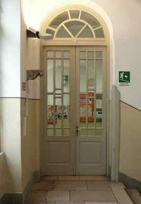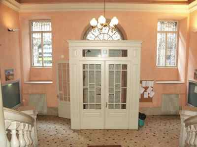 ELEMENTO ORNAMENTALE (esterno) Lesene bugnate trattate ad intonaco con basamento in pietra bianca in corrispondenza degli spigoli dell'edificio. ELEMENTO ORNAMENTALE (esterno) Basamento trattato a bugnato, in pietra bianca naturale bocciardata nella parte inferiore, trattato ad intonaco finto bocciardato nella parte posta superiormente al marcapiano. ELEMENTO ORNAMENTALE (esterno) Edicola in corrispondenza dell'ingresso su Viale XX Settembre, con lesene ed arco a tutto sesto con chiave di volta decorata da motivo a voluta in pietra bianca bulinata, trabeazione con fregio decorato da motivi geometrici e gocciolatoio modanato, sostenuta da due colonne in stile dorico in pietra bianca bulinata; portale in legno massello verniciato naturale con borchie metalliche ed intarsi lignei decorativi. Sopraluce vetrato protetto da inferriata in ferro battuto. ELEMENTO ORNAMENTALE (esterno) Modesta edicola decorativa in corrispondenza dell'ingresso su Via Giotto; portale in legno massello a quattro specchiature vetrate con sopraluce; cornice in pietra bianca bulinata, specchiatura in pietra bianca al di sopra del portale ed architrave modanato aggettante, sostenuto da alte mensole a voluta. ELEMENTO ORNAMENTALE (interno) Antiche mensole a voluta e foglia d'acanto in pietra bianca in corrispondenza dei pianerottoli del vano scala (PICT0655.JPG), probabilmente un tempo desinate al sostegno dei corpi illuminanti. LAPIDE (interno) Nel corridoio al piano terra, lapide a lettere metalliche argentate su lastra in marmo nero con la seguente iscrizione "PALESTRA MEDAGLI D'ORO DOTT. SILVANO BUFFA, TENENTE DEGLI ALPINI, FRONTE GRECO MALI SPADARIT, 10 MARZO 1941" LAPIDE (interno) Nell'atrio di ingresso, lapide in marmo cipollino con lastra decorativa trattata a sbalzo riportante la data "IV NOVEMBRE". LAPIDE (interno) Nell'atrio di ingresso, lapide commemorativa su lastra in marmo repen riportante la seguente dicitura "ALUNNI DEL LICEO-GINNASIO F. PETRARCA MORTI PER LA PATRIA" (seguono i nomi) LAPIDE (interno) Nell'atrio di ingresso, lapide commemorativa su lastra in breccia carsica (PICT0662.JPG), riportante lo stemma della Divisione Alpina Julia e le medaglie ai all'8° Reggimento Alpini, al 9° Reggimento Alpini, al 3° Reggimento Art. Alpina ed al 3° Battaglione Misto Genio