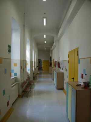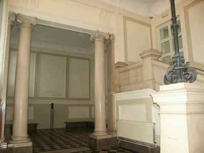 Basamento esterno di facciata trattato a finto bugnato di intonaco a livello del piano terra, con fascia marcapiano a livello del solaio del piano terra ed abbassamento in pietra bianca bulinata a livello delle finestre del piano seminterrato. Marcapiano quadro rifinito ad intonaco a livello del solaio del primo piano; più sottile a livello del solaio del secondo piano; coronamento con fregio decorativo a motivi geometrici e banchina sporgente modanata con gocciolatoio. Paraste di ordine gigante trattate ad intonaco scandiscono verticalmente i ritmi di facciata. Fori architettonici del piano terra con piattabanda a finto bugnato con chiave di volta in rilievo sulla facciata; al primo piano finestre riquadrate da edicole trattate ad intonaco con paraste laterali, doppio architrave, gocciolatoio modanato e davanzale in pietra bianca. Portali di ingresso a doppia anta tutti in legno massello con decorazioni geometriche delle parti tamponate, specchiature vetrate protette da inferriate decorate in ferro battuto e sopraluce a due specchiature; cornici in pietra bianca bulinata. Ingresso sulla Via della Bastia dotato di maggiore monumentalità, a mezzo di cornice modanata in pietra bianca di notevoli dimensioni; tettoia metallica di grandi dimensioni a protezione dell'ingresso, decorata da elementi di sostegno reticolari decorati da motivi geometrici. Sulla Via della Bastia, agli estremi della facciata, attici con piccole finestre quadrate; decorazione di facciata a lesene con capitello ionico, timpano modanato con dentelli ed acroteri. Facciate sul cortile interno più sobrie, trattate ad intonaco a tutta altezza; fascia marcapiano a livello del solaio del primo piano; coronamento decorato da fascia modanata in pietra bianca con piccole finestre rettangolari, che danno luce al sottotetto; cornici in pietra bianca in corrispondenza dei fori a tutti i livelli; architrave modanato in pietra bianca a livello del primo piano. Scale esterne in pietra bianca bulinata con parapetto in muratura, per l'accesso al piano terra dal cortile interno. Manto di copertura in coppi curvi rossi uso Trieste, gronde e pluviali in lamiera; pluviali interni alla muratura a livello del piano terra delle facciate rivolte verso strada. SCUOLA SLATAPER, CORRIDOIO NORD ED EST Serramenti esterni doppi; esternamente a doppia anta in alluminio verniciato bianco con vetrocamera e sopraluce vetrato; internamente permane il serramento originale ligneo a due ante ad otto specchiature, con sopraluce apribile a vasistas. Atrio di ingresso sulla Via della Bastia con pavimento in marmo a scacchiera bianca e nera, colonne con capitello corinzio in marmo lucido, soffitto a padiglione con decorazioni a stucco. Pareti con cornici a stucco e specchiature pitturate colore bianco. Monumento a Scipio Slataper sulla parete di fondo. Scala di accesso al piano terra rialzato con gradini in pietra bianca bulinata e parapetto in marmo decorato a motivi geometrici. Elementi a supporto dei corpi illuminanti in ferro verniciato colore nero. Corridoi interni pavimentati parzialmente a mezzo di battuto in graniglia e cemento, parzialmente a mezzo di piastrelline di ceramica bianca con decorazione nera. Pavimenti delle aule in parquet ligneo disposto a spina di pesce, con riquadri in marmo bianco in corrispondenza degli angoli dove un tempo erano posizionate le stufe a legna. Serramenti interni originali lignei di grandi dimensioni a più ante, con specchiature vetrate e sopraluce di grandi dimensioni in corrispondenza degli accessi ai corridoi; serramenti di porte in legno massello a riquadri rettangolari in corrispondenza delle aule. Vasche in marmo di Aurisina poste lungo i corridoi, utilizzate dai militari al tempo in cui l'edificio era adibito a caserma. Pareti trattate ad intonaco bianco con abbassamento in pittura ad olio. Scale di accesso ai piani con gradini in pietra bianca bulinata e parapetto con ringhiera in ferrro battuto decorato a motivi geometrici e corrimano ligneo curvato in corrispondenza dei pianerottoli. Al piano terra, piccolo teatro interno con sedute in legno massello con chiusura a bilico, disposte su platea a gradoni. SCUOLA TIMEUS, CORRIDOIO OVEST Atrio di ingresso con scala di accesso al piano terra rialzato in pietra bianca squadrata e lucidata di moderna fattura e corrimano in acciaio inox in corrispondenza del numero civico 56 di Via dell'Istria. Scala in pietra bianca bulinata di epoca storica con colonnine laterali in ghisa, in corrispondenza del numero civico 58 di Via dell'Istria. Serramenti di finestra in alluminio verniciato bianco con sopraluce, privi dell'anta interna in legno. Serramenti interni vetrati in alluminio laccato colorato in corrispondenza delle porte di comunicazione dei corridoi; porte metalliche antincendio verniciate a chiusura automatica in corrispondenza delle aule. Corridoi con pavimenti in linoleum e pareti rivestite in piastrelle colorate formato 15x15 fino ad altezza 180 cm. Aule con pavimenti in parquet disposto a spina di pesce; superfici verticali intonacate con abbassamento in pittura ad olio. Vano scala principale con gradini in pietra bianca bulinata, parapetto in ferro verniciato con decorazioni geometriche e corrimano in legno, curvo in corrispondenza dei pianerottoli; pavimentazione dei pianerottoli in lastre di pietra di Aurisina. Vano scala secondario con scala in pietra bianca squadrata e lucidata di moderna fattura, parapetto metallico di semplice fattura e corrimano ligneo.