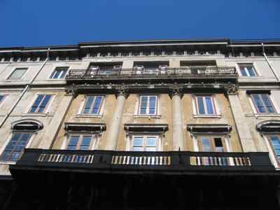 BALCONE (esterno): Balcone con parapetto a balaustre in pietra al primo e secondo piano della facciata su Via Trento. LESENE (esterno): Lesene di ordine gigante con capitello corinzio al secondo e terzo piano della facciata su Via Trento.