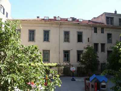 Fabbricato di forma allungata ad "L", definente i fronti strada sulla Via Madonna del Mare e sulla Via Tigor. In prossimità delle antiche mura medievali, il corpo edilizio appartiene ad una zona della città edificata nella seconda metà del secolo XIX, con corpi edilizi di medie dimensioni, leggermente inferiori a quelle del Borgo Giuseppino, a causa dell'orografia. Corpo di fabbrica a tre livelli continui fuori terra più sottotetto abitabile. Un piccolo corpo di fabbrica aggiuntivo a tre livelli, edificato successivamente su lotto gotico salda la discontinuità con l'immobile preesistente a valle di quello in oggetto e presenta facciata semplice trattata ad intonaco. Internamente l'edificio è organizzato su un corridoio cieco centrale ed una serie di aule laterali prospettanti sulla via pubblica e sul cortile interno. Un portale dà accesso alla basilica paleocristiana rinvenuta nel corso di lavori stradali sulla Via Madonna del Mare e estesa al di sotto dell'edificio e del manto stradale stesso. Sulla Via Tigor il fabbricato si pone in continuità con l'attiguo palazzo edificato nello stesso periodo sulla particella catastale contigua e facente parte della medesima partita tavolare. Architettura di stile eclettico di seconda metà secolo XIX; partitura di facciata suddivisa orizzontalmente in un basamento a bugnato nella parte bassa ed in una fascia trattata ad intonaco nella parte alta; chiude la composizione sul fronte principale l'attico, messo in evidenza da una cornice sporgente a livello della linea di gronda. Strutture verticali in muratura portante di pietra arenaria con archi di scarico ribassati in corrispondenza dei fori architettonici in facciata; strutture orizzontali di interpiano lignee; copertura a falde con struttura lignea ad orditura multipla, travature principali parallele alla linea di colmo, puntoni secondari ortogonali alla prima orditura ed arcarecci paralleli alla linea di colmo a supporto di tavelle in cotto; manto di copertura in coppi curvi rossi uso Trieste.