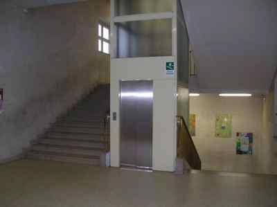L'area su cui sorge l'edificio è di forma quadrata, delimitata da una recinzione metallica e da un muro di contenimento a monte. Il complesso scolastico è composto da un corpo edilizio ad "L" a tre piani fuori terra e da un corpo ad un unico livello dove si trova la palestra. La struttura portante dell'edificio è realizzata con un telaio pilastri in cemento armato; i solai sono in latero cemento. I collegamenti verticali sono composti da due scale a doppia rampa con interpiano. La copertura piana è rivestita da una guaina bituminosa; grondaie e pluviali sono in lamiera zincata. Il piede del muro è rivestito da lastre in pietra bulinata delimitate da una cornice marcapiano. Il rivestimento delle facciate è in mattoni "faccia a vista", esteso fino alla cornice del tetto e integrato da fasce in pietra poste in corrispondenza delle cornici dei fori. Le facciate sono forate da finestre rettangolari con cornice modanata in pietra. La cornice del tetto è adornata da conci in pietra a forma di cuneo. L'accesso principale, adiacente a Scala Campi Elisi, è costituito da un'ampia scalinata che introduce ad un portico ed all'atrio d'ingresso; un secondo accesso è ricavato sul retro dell'edificio.