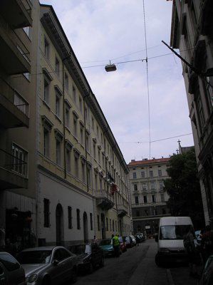 L'edificio, progettato da Francesco Scalmanini nel 1841, è l'unica testimonianza a noi pervenuta del grande passato cantieristico della Trieste ottocentesca. Su questo fondo infatti già dal 1788 sorgeva lo squero di Odorico Panfili, che ricoprì un ruolo di prima linea nella costruzione della prima flotta mercantile triestina e mantenne il suo prestigio per più di cinquant'anni fino al 1852. Attualmente rimane solamente la costruzione annessa al cantiere che ospitava uffici ed abitazioni. La descrizione storico-artistica allegata al decreto di vincolo definisce l'intero complesso edilizio una "prova assai consistente nel patrimonio architettonico edilizio triestino dell'Ottocento, che con il suo impianto , più che con i suoi arredi, ormai perduti, ribadisce la felice congiuntura del periodo neoclassico della città di Trieste.