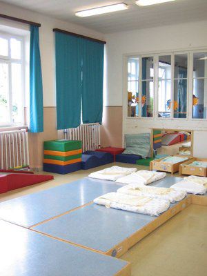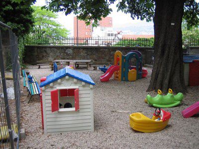 Sorto nel 1932 su progetto dell'architetto M. Toffaloni, l'asilo di via di Caboro 2, ex nido Regina Elena, trova la sua ubicazione in una posizione alquanto amena inserita com'è nel verde del Parco della Rimembranza sotto le mura del castello di San Giusto. Ospita attualmente l'asilo nido "Tutti Bimbi". La costruzione dell'edificio rientrava in uno specifico programma edilizio: quello dell'ICAM, Istituto Comunale Abitazioni Minime, destinato alla realizzazione di alloggi popolari rivolti alle famiglie più disagiate fornendo quindi, nel contempo, adeguate strutture di pubblica utilità al servizio di quella collettività sostenuta dalla politica assistenziale del regime. Il fabbricato dalle ridotte dimensioni, ispirato ad un sobrio eclettismo ed ingentilito nel suo affaccio principale da una struttura ad archi, fu dotato di cortile per la ricreazione. L'edificio subì un rimodernamento dell'impianto lavanderia nel 1946 ad opera di Luciano Levi. Al primo piano trovarono posto diversi locali: una cucina, la sala pranzo, l'ambulatorio medico, la direzione, la stanza per il custode e la lavanderia mentre al piano superiore la sala giochi, il refettorio ed i bagni.