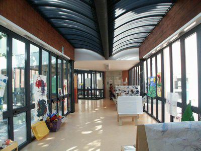 Immobile su due livelli continui fuori terra. La recente realizzazione del nuovo ingresso sulla Via Alessandro Manzoni, con struttura metallica in acciaio verniciato color antracite, travature in legno lamellare ed ampie specchiature vetrate, costituisce l'atrio di accesso all'asilo comunale ed il collegamento con l'attiguo edificio. La pianta dell'edificio è suddivisa in un corpo centrale a due livelli con copertura falde e due corpi laterali ad un solo livello con copertura piana calpestabile. Sul retro del corpo principale sono stati recentemente edificati nuovi corpi edilizi ad un livello. Il prospetto principale è simmetrico e presenta elementi decorativi in stile neorinascimentale; il corpo centrale, in leggero aggetto, presenta due portali laterali. La facciata è suddivisa orizzontalmente da una cornice marcapiano posta in continuità con la copertina superiore del parapetto delle terrazze delle ali laterali. Le strutture verticali sono in muratura portante di arenaria a corsi irregolari suborizzontali, con cordoli perimetrali in calcestruzzo armato. Strutture orizzontali in laterocemento e copertura a falde con struttura in legno lamellare composta da capriate a sostegno della trave di colmo, puntoni ortogonali alla trave di colmo e tavolato ligneo. I vani scala sono appoggiati sulla muratura portante.