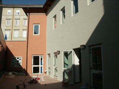 L'edificio degli ex bagni pubblici, oggi completamente restaurato ed ospitante un asilo nido collegato all'attigua scuola materna sita al civico 12-14, risale alla fine del XIX secolo allorquando si sentì forte la necessità di provvedere affinché anche i meno abbienti avessero la possibilità di "procurarsi bagni, in vasca o a doccia a equo prezzo". Inaugurato il 22 agosto del 1898 lo stabilimento, sorto per iniziativa benefica di una Società senza altro scopo se non quello di favorire appunto la pubblica igiene tra i ceti meno fortunati, fu chiuso durante il primo conflitto mondiale a causa della mancanza d'acqua. Fu riattivato solo nel 1919. Nel 1922 l'edificio passò in gestione al Comune che ne regolamentò l'amministrazione sottoponendolo al controllo della ragioneria municipale fino alla sua definitiva chiusura e trasformazione d'utilizzo.