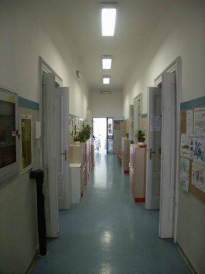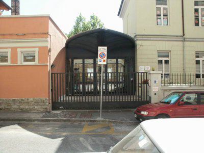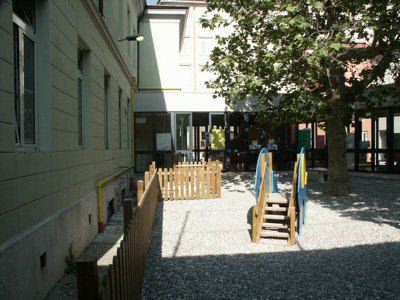 Nel 1884, in occasione del matrimonio del principe ereditario Arciduca Rodolfo, il Consiglio cittadino deliberò di stanziare la somma di 20.000 fiorini da destinarsi alla costruzione di un asilo infantile nella zona di Chiadino sul fondo tavolare N.382 di proprietà del Comune fronteggiante un'androna in continuazione di via Manzoni. Il fondo, che avrebbe dovuto comprendere tanto la costruzione dell'edificio quanto quella di un giardino per un totale di 1520 mq, veniva così a trovarsi tra le Sale di Lavoro per fanciulli abbandonati e la Pia Casa dei Poveri. L'inaugurazione del nuovo Giardino d'Infanzia intitolato all'Arciduca Rodolfo avvenne il 20 ottobre 1884. La cifra iniziale fu ben presto superata tanto da raggiungere la spesa complessiva di 29.461 fiorini. La costruzione comprendeva due livelli: al piano inferiore trovarono posto tre stanze didattiche, la cancelleria e, come era allora consuetudine, l'alloggio per la dirigente, al piano superiore furono invece previste una palestra, un refettorio, un'ulteriore stanza scolastica ed una cucina con annessa dispensa. Nel 1884 a soli tre mesi dall'apertura a causa di un'epidemia di vaiolo l'asilo fu trasformato in ospedale. Il 1 aprile dell'anno seguente fu riaperto al pubblico, ma otto mesi più tardi chiuso di nuovo per l'imperversare di una grave epidemia di colera, fatto questo che costrinse il Comune a destinare l'edificio scolastico a "casa di osservazione" per le famiglie colpite dalla malattia. L'8 gennaio del 1887 il Magistrato Civico decretò la riapertura dell'asilo. Oggi la scuola, completamente restaurata e rinnovata nei suoi interni, è divisa in due strutture distinte: la scuola materna, nell'edificio del fu asilo Arciduca Rodolfo (sita al civico n.14) e l'asilo nido nell'edificio attiguo (al civico n.10 e 12) di proprietà del Comune sin dalla sua originaria destinazione come bagno pubblico. I dati catastali-tavolari riportati nella presente scheda sono riferiti al piano presentato nel corso dell'anno 2005, in corso di approvazione alla data dell'inserimento.