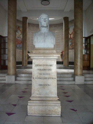 ISCRIZIONE (esterno) Sulla cornice in pietra bianca sopra l'ingresso principale, iscrizione incisa riportante la seguente dicitura: "LICEO GINNASIO DANTE ALIGHIERI" ELEMENTO ORNAMENTALE (interno) Decorazione dell'abside semicircolare in corrispondenza dell'atrio di ingresso centrale. Iscrizione dedicata ai caduti nel corso dei due conflitti mondiali riportante la dicitura "FORTIA ET FACERE ET PATI ROMANUM ESSE HIC DICERUNT HIC DOCENT", presumibilmente evocante l'espressione di Tito Livio riportata in "Ab Urbe Condita" 2.12.8-12 (Fiere parole di Gaio Muzio al re Porsenna) Due affreschi laterali raffiguranti allegorie della guerra e lapidi marmoree riportanti i nomi dei caduti al fronte decorati con medaglie all'onore militare. ELEMENTO ORNAMENTALE (interno) Nell'atrio di ingresso centrale, statua in marmo nero dedicata a Cesare Imperatore, riportante sul piedistallo la dicitura "IMP CAESAR COS DESIG TERT, III VIR R.P.C. ITER, MURUM TURRESQUE FECIT" ELEMENTO ORNAMENTALE (interno) Nell'atrio di ingresso centrale, busto dedicato a Dante Alighieri, riportante sul piedistallo la dicitura "GENIO TUTELARE VOLLERO QUI GLI ALUNNI IL SOMMO VATE D'ITALIA, MDCCCXCIV" LAPIDE (interno) Nell'aula Magna dell'istituto, lapide in pietra bianca lucidata dedicata a Baccio Ziliotto, riportante la dicitura "ARTISTA, SCRITTORE E STORICO INSIGNE DELLA CULTURA LETTERARIA GIULIANA, BACCIO ZILIOTTO RESSE DAL MCMXIII AL MCMXXXVIII QUESTO LICEO GINNASIO, MAESTRO ED ESEMPIO AI GIOVANI D'AMOR PATRIO D'OSSEQUIO AL DOVERE E DI VIRTU' CIVILI" ELEMENTO ORNAMENTALE (interno) Nell'aula Magna dell'istituto, targa in rame trattato a sbalzo, riportante la dicitura "PER LA GRANDEZZA DEL NOME ITALIANO MILITI VOLONTARI NELLA GUERRA DI REDENZIONE CADDERO [...]" ELEMENTO ORNAMENTALE (interno) Nell'aula Magna dell'istituto, lapide in pietra bianca lucidata dedicata a Giano Stuparich, riportante la dicitura "IL LICEO GINNASIO DANTE RICORDA E ONORA GIANI STUPARICH EROICO SOLDATO UMANO MAESTRO FORTE E ORIGINALE SCRITTORE" ELEMENTO ORNAMENTALE (interno) Nell'aula Magna dell'istituto, busto in marmo nero dedicato ad Onorato Occioni, con lapide in marmo bianco lucidato riportante la dicitura "A ONORATO OCCIONI POETA E FILOLOGO ORDINATORE SAPIENTE E RETTORE PRIMO DEL GINNASIO CHE NELLA GLORIOSA LINGUA DEGLI AVI ALLE UMANE LETTERE E ALLA VITA EDUCA I FIGLI DI TRIESTE, POSE IL MUNICIPIO L'ANNO I° DALLA FONDAZIONE" ELEMENTO ORNAMENTALE (interno) Nell'aula Magna dell'istituto, lapide in pietra bianca lucidata, dedicata a Guido Costantini, riportante la dicitura "LA DOTTRINA E LA BONTA' DEL PROFESSORE GUIDO COSTANTINI AMANO PERENNEMENTE RICORDATE, I DISCEPOLI QUI DOVE INSEGNO' DAL MDCCCLXXXV AL MCMXII" ELEMENTO ORNAMENTALE (interno) Nell'aula Magna dell'istituto, lapide in pietra bianca lucidata, dedicata a Gian Luigi Bisoffi, riportante la dicitura "EDUCATORE E MAESTRO ESEMPLARE COMBATTENTE DELLA GUERRA DI REDENZIONE GIAN LUIGI BISOFFI CONSACRO' ALLA PATRIA AGLI STUDI ALLA SCUOLA LE ALTE DOTI DEL CARATTERE E DELL'INTELLETTO, RESSE CON FERMEZZA SENNO E AMORE QUESTO LICEO GINNASIO MCMXXXVIII-MCMLXI" ELEMENTO ORNAMENTALE (interno) Nell'aula Magna dell'istituto, busto metallico trattato a sbalzo dedicato a Pio Riego Gambini. La targa in ottone riporta le date di nascita e morte "CAPODISTRIA IV-IX-MDCCCXCIII, PODGORA XIX-VII-MCMIV" Una lapide in pietra bianca lucidata riporta la dicitura "QUESTO BUSTO ERETTO NEL 1919 A CAPODISTRIA IVI OSTILMENTE DISTRUTTO NEL 1948 DAL 1955 QUI RIVIVE ED ATTENDE"