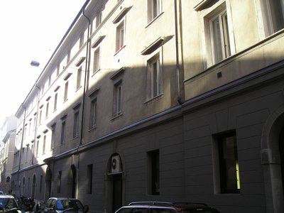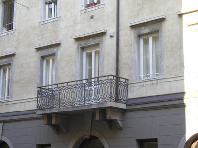 BALCONI (esterno) Balconi all'altezza del primo piano ingentiliti da ringhiera in ferro battuto con un motivo di semplici linee curve. ELEMENTI ORNAMENTALI (esterno) Elemento decorativo a voluta in chiave di volta del portale d'ingresso principale, su via del Toro.