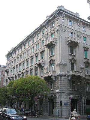 L'immobile sorge su Via Cesare Battisti, già Corsia Stadion, il cui nome deriva dal conte Stadion che nel 1846 diventa promotore dell'imbonimento del "torrente detto dello Scoglio, proveniente dal monte Staribrek a S. Giovanni, il quale andava a congiungersi all'altro detto di Cluz al ponte di Chiozza" (Generini, 1968, p. 322). Come testimoniano le fonti dell'epoca, dalla metà dell'Ottocento la via, in origine fiancheggiata da case di modeste dimensioni e di "poca apparenza", si caratterizza per la presenza di importanti palazzi, diventando "in breve una delle più belle vie della città" (Generini, 1968, p. 322-323). L'edificio in esame s'inserisce nella seconda fase dello sviluppo urbanistico della zona, databile agli inizi del Novecento. Il palazzo viene realizzato entro il 1903 su commissione delle Assicurazzioni Generali; il progetto, dello stesso anno, reca le firme dell'architetto Giorgio Polli e del dirigente dei lavori "I. Piani" (ACT_8472). L'edificio viene progettato secondo una "commistione tra elementi liberty, elementi biedermeier e revivaldegli stili storici che costituisce lo "stile" proprio della "casa-bene" per eccellenza, i palazzi della Ringstrasse" (Zanni, 1990, p. 99); i disegni presentano studi accurati dei particolari, soprattutto per gli interni, forniti direttamente alle singole maestranze specializzate. Nell'ala sinistra del pianoterra, in origine occupata dalla Latteria Trifolium, il 3 gennaio 1914 viene inaugurato da Marco Lovrinovich il Caffè San Marco; il locale, in stile floreale Liberty, è decorato da stucchi dorati, specchi, diversi dipinti raffiguranti figure di maschere, opera dell'artista Ugo Fiumani, e affreschi del pittore Guido Marusig. Lo storico Caffè viene ricordato come ritrovo degli irredentisti italiani e di letterati quali Italo Svevo e Umberto Saba; nel locale viene anche ambientato lo sceneggiato televisivo "Coscienza di Zeno", diretto da Sandro Bolchi. Il Caffè viene danneggiato nel maggio del 1915 dai dimostranti filo austriaci. Nel novembre del 1989 vengono completati dei lavori di ristrutturazione generale dell'edificio; nel 2000 il Caffè San Marco viene interessato da un restauro durato tre mesi e sostenuto dalle Assicurazioni Generali, proprietaria dell'immobile.