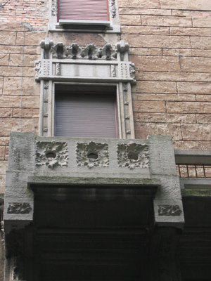 STATUE (esterno): Coppia di statue in pietra raffiguranti immagini di donna a cui corrispondono al di sopra due putti dello stesso materiale, attribuiti agli artisti Romeo Rathmann e Romeo de Paoli, colocati in corrispondenza dell'ingresso principale su Via Venti Settembre. FREGI( esterno): Fregi a rilievo a decorazione delle aperture, cornici e specchiature delle finestre con motivi floreali e vegetali su tutti e tre i lati dell'edificio. COLONNE (esterno): Colonnine con capitello con decorazioni a rilievo a motivi floreali i corrispondenza di alcune finestre del quinto piano su tutti e tre i lati dell'edificio.