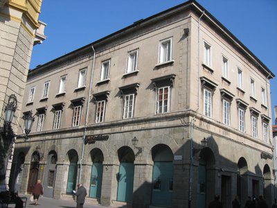 Il fabbricato venne edificato nel 1827 su progetto di Pietro Nobile. Il progetto per casa Fontana risulta dalla rielaborazione di un disegno predisposto da Nobile nel 1813 per la costruzione di un mercato del pesce in un'altra zona della città, l'attuale piazza Hortis. L'area sulla quale venne costruito l'immobile in precedenza era occupata dal magazzino del sale, fatto erigere dall'imperatore Carlo VI agli inizi del Settecento e demolito nel 1821. L'edificio, in stile neoclassico, venne fatto costruire dal Comune che lo destinò a mercato del pesce. Al pianterreno, infatti, c'era un portico sorretto da colonne doriche, dove si svolgeva il commercio. I due piani superiori erano ad uso di abitazione privata. Nel 1829 il commerciante di tabacco Pietro d'Ottavio Fontana entrò in possesso del primo e del secondo piano dell'edificio; mentre nel 1831, rivelatosi insufficiente lo spazio per il mercato del pesce che venne trasferito altrove, il Comune cedette al Fontana anche il porticato. Nel 1831, su disegno di Valentino Valle, Fontana fece chiudere il porticato per ricavare dei locali da adibire a magazzino. La facciata principale, in origine, era decorata con clipei a bassorilievo e finestre sormontate da timpani rettilinei. All'interno alcuni soffitti presentano delle decorazioni ad affresco. Al secondo piano, sulla parete della scala elicoidale vi è un affresco che riproduce l'aquila e la lapide che si trovava nel demolito magazzino del sale. Si tratta di una commemorazione della battaglia di Zenta. Nel 1884 al primo piano di casa Fontana aveva sede il "Gabinetto di Minerva". Nel 1955 l'immobile era di proprietà del barone Giuseppe Morpurgo e della baronessa Lavinia Morpurgo nata Fontana. Nel 1988 l'edificio è stato interessato da lavori di ristrutturazione. In particolare al piano terra sono state realizzate opere funzionali per l'adattamento degli spazi ad ufficio bancario.