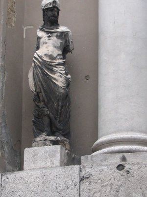 COLONNE (esterno) Colonne di ordine gigante con capitello ionico. STATUE (esterno) Alle estremità del colonnato sono collocate due statue raffiguranti Marte e Minerva, realizzate nella bottega veneziana di Antonio Bosa. FREGI (esterno) I fregi scolpiti a bassorilievo raffigurano eventi eroici della Roma repubblicana, in particolare una vicenda legata a Coriolano, Virginia uccisa dal padre e il sacrificio di Ifigenia. BALAUSTRE (esterno) Il parapetto del colonnato è caratterizzato da balaustrini da anfora in pietra. AFFRESCHI (interno) Decorazioni ad affresco sono presenti nella sala circolare e nella cosiddetta "saletta pompeiana". Rappresentano temi desunti dall'iconografia classica, come ad esempio la favola di Amore e Psiche, e affreschi di stile pompeiano.