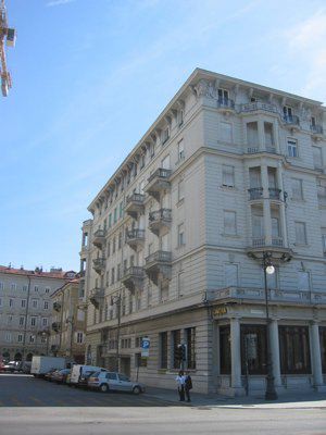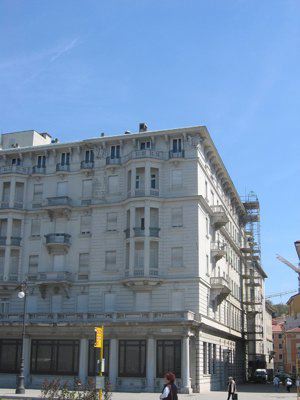 BALCONE (esterno): Balconi con parapetti in pietra o in ferro battuto a decorazione dei quattro prospetti dell'edificio. COLONNE (esterno): Colonne di ordine dorico con trabeazione classica a ritmare il pianoterra vetrato del prospetto principale. COLONNE (esterno): Colonne ioniche di ordine gigante in corrispondenza del terzo e quarto livello fuori terra della superficie centrale del prospetto principale. SCULTURE (esterno): Sculture raffiguranti putti che sostengono uno stemma in corrispondenza degli angoli al di sotto dello sporto di linda. SCULTURE (esterno): Sculture raffiguranti due figure, la Città di Trieste e Nettuno, collocate alla sommità del prospetto principale. FREGIO (estrerno): Fregio a mosaico riproducente la scritta "Savoia Excelsior Palace" di colore nero su fondo blu in corrispondenza del parapetto alla sommità del prospetto principale. MENSOLE (esterno): Mensoloni in pietra decorati da motivi floreali a sostegno dello sporto di linda.