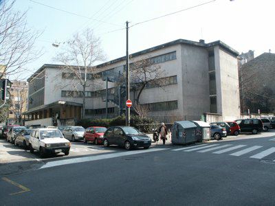 Il fabbricato, isolato su lotto di pertinenza, si distingue dal tessuto edilizio circostante per non presentare una pianta conformata alla geometria del lotto. L'edificio principale si articola su tre livelli fuori terra, più un livello interrato. La porzione centrale dell'edificio, in aggetto verso il fronte strada di Via Vasari, ospita l'atrio di accesso e gli uffici amministrativi. Le ali laterali ospitano le aule, rivolte in direzione sud-est. Le finestre a nastro a tutti i livelli accentuano l'orizzontalità della facciata. Nel cortile di pertinenza un secondo piccolo corpo edilizio ospita la palestra, collegata al corpo principale a mezzo di uno stretto corridoio. Le strutture portanti sono in calcestruzzo armato, con solai in laterocemento e tetto piano poco aggettante; una pronunciata pensilina in calcestruzzo armato, sorretta da cinque pilastri, protegge l'ingresso principale.
