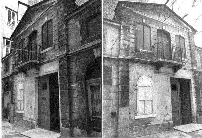 LESENE (esterno): Lesene scanalate e lisce ai del portale centrale e del prospetto principale. BALCONE (esterno): Balcone con parapetto a balaustre in pietra nella parte centrale del primo piano del prospetto principale. PANDURO (esterno): Panduro raffigurante un volto umano in corrispondenza della chiave di volta dell'arco del portale del prospetto principale. MENSOLE (esterno): Mensole a voluta a sostegno del balcone centrale del prospetto principale. CORNICE (esterno): Cornice a dentelli a coronamento del prospetto principale.