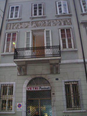 In questo edificio neoclassico, costruito nel 1823 su progetto di Matteo Pertsch, troviamo il motivo caro a lui caro di ornamenti a bassorilievo presente in numerose sue opere, e per il quale egli stesso si interessava contattando direttamente scultori e scalpellini. Nel 1952 sono state operate delle modifiche alla facciata al pianterreno.