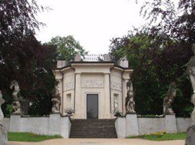 Il complesso si compone di diversi edifici costruiti all'interno del parco. La villa è formata da una semplice struttura con corpo centrale e due parti laterali aggettanti, a due piani fuori terra. Le superfici murarie sono articolate da semplici fori finestra rettangolari e da un'ampi vetrata sulla facciata principale. La struttura della gloriette si presenta di forma ottagonale; quattro fianchi sono caratterizzati da fori rettangolari inquadrati da semicolonne di ordine dorico che sostengono una trabeazione classica, mentre i rimanenti lati sono arricchiti da sculture. A coronamento della struttura si trova una balaustra con parapetto in ferro battuto, a cui si accede attraverso una scala a chiocciola; il sterminamento del balcone è arricchito da piccole sculture raffiguranti animali e sfingi. Un fregio a rilievo corre nella parte superiore della superficie muraria per tutto il perimetro della struttura; i rilievi raffigurano putti in diversi atteggiamenti. L'accesso alla gloriette è garantito da una scalinata affiancata da quattro sculture rappresentanti dei cavalli.