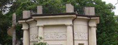 SCULTURE (esterno): Sculture raffiguranti quattro cavalli a lato della scalinata di accesso alla gloriette. SCULTURE (esterno): Sculture raffiguranti leoni, tigri, sirene e sfingi a coronamento della balaustra della gloriette. SCULTURE (esterno): Quattro sculture opera di Francesco Bonazza raffiguranti l'Abbondanza, la Pudicizia, Adone e una figura di guerriero all'interno di nicchie aperte su quattro lati dell'ottagono della gloriette. FREGIO (esterno): Fregio a rilievo raffigurante putti in diversi atteggiamenti lungo il perimetro della superificie muraria superiore della gloriette. SEMICOLONNE (esterno): Semicolonne di ordine dorico in corrispondenza degli angoli della struttura ottagonale della gloriette.