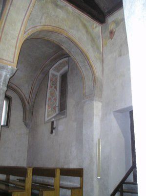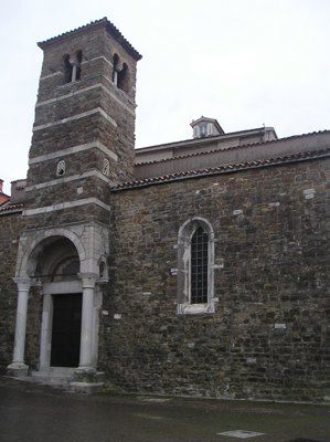 LAPIDE (esterno) Lapide posta dai Gesuiti nel 1672 recitante " TERGESTVM SS. EVPHEMIAE ET THECLAE NOBIL, VV. ET MM. TERGESTIN. DOMICILIVM PRIMVM TEMPLVM ET CATHEDRALE IMMACVLATAE VIRG. ORATORIVM RESTAVRATVM M.D.C.L.XXII." AFFRESCO (interno) Frammenti di pitture ad affresco trecentesche raffiguranti una scena relativa alla vita dell'imperatore Costantino e una probabile Annunciazione. ROSONE (esterno) Rosone con raggiera ad archi a tutto sesto sulla facciata principale. COLONNE (interno) Colonne in pietra con capitello cubico suddividono le navate interne. PROTIRO (esterno) Protiro romanico in pietra bianca con colonne a sostegno dell'arco a tutto sesto.