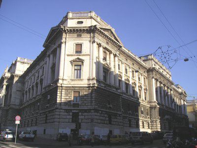 La struttura presenta una planimetria trapezoidale con corte interna e affaccio principale sul Foro Ulpiano, secondari su Via del Coroneo, Via della Fontana e Via Fabio Severo. Le facciate sono costituite da un alto basamento a robusto bugnato in pietra del Carso proveniente da una cava di Aurisina. Il basamento, solcato da due ordini di finestre, si conclude con una robusta cornice marcapiano in pietra. Sopra il basamento, i due piani superiori sono scanditi da semicolonne e paraste di ordine ionico in pietra proveniente dalle cave di Pola. Le facciata principale e quella laterale prospettante Via del Coroneo presentano un corpo centrale sporgente e sopraelevato, caratterizzato da un colonnato di ordine gigante ionico impostato su una balaustra. Le finestre del piano nobile sono sormontate da timpano, quelle in corrispondenza del colonnato della facciata sul Foro Ulpiano sono coronate da timpano spezzato su cui si innestano le aperture ovali del piano superiore. Le facciate terminano con una cornice marcapiano in pietra di Pola sostenuta da mensoline e timpani agli angoli. Le parti sopraelevate presentano aperture di forma ellittica nel sottotetto e sono sormontate da balaustre sul tetto. Sull'attico del corpo centrale aggettante sono collocate sei grandi statue di giuristi romani.