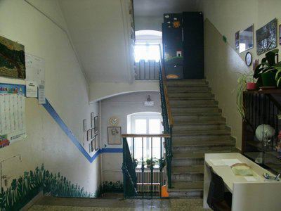 L'edificio in località Trebiciano è un fabbricato a due piani con ampio cortile sul retro, restaurato di recente si presenta in uno stile molto sobrio e lineare. Il problema delle scuole slovene fu molto sentito, soprattutto nelle zone rurali limitrofe la città, che, prive di idonei edifici scolastici, avevano più volte chiesto al Comune la possibilità di erigere i propri istituti. La scuola con insegnamento in lingua slovena fu alla fine realizzata con modestia di mezzi nel 1871 allorquando ne venne decretata la costruzione sul fondo N. Tav. 677. Negli anni cinquanta subì un primo intervento di restauro per i danni subiti durante il recente conflitto. Risale al 1972 il progetto di un nuovo muro di cinta e la posa di una stele con busto bronzeo di "Pinko Tomazic" in occasione della nuova denominazione della scuola elementare di Trebiciano per conto dell'associazione degli alunni della scuola stessa. Attualmente ospita la scuola elementare statale con lingua di insegnamento slovena P. Tomazic e la scuola elementare statale U. Polonio.