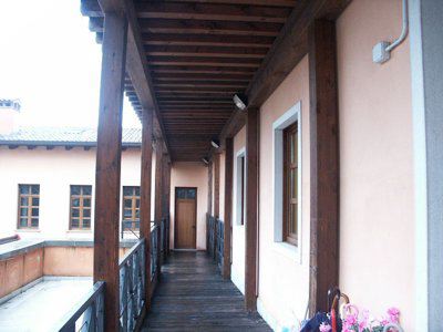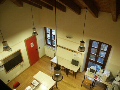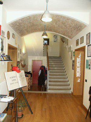 CORPO DI FABBRICA PRINCIPALE Fascia basamentale rivestita in pietra di Aursina a conci squadrati e corsi regolari orizzontali con finitura a spacco di cava. Fori architettonici con piattabanda interna ad arco ribassato e con cornici esterne in pietra di Aurisina bulinata; serramenti esterni vetrati lignei a doppia anta con sei specchiature vetrate, verniciati al naturale, di recente fattura. Superficie di facciata rifinita ad intonaco liscio sino all'intradosso di copertura; banchina in lastre di pietra di Aurisina, gronde e pluviali in lamiera verniciata esterni alla muratura perimetrale; manto di copertura in coppi curvi rossi uso Trieste. Pavimentazione interna in legno, in listoni a correre, di fattura uniforme in tutti gli ambienti. Scala interna con gradini in pietra calcarea e pianerottoli di interpiano in lastre di pietra bocciardata; parapetto metallico verniciato con corrimano ligneo. Superfici murarie trattate ad intonaco pitturato color bianco con abbassamento in smalto murale grigio chiaro. Serramenti interni di recente fattura con pannellature rifinite in laminato plastico. Spazio del sottotetto con ampia vetrata in cristallo di sicurezza, affacciata sugli spazi delle aule sottostanti. PORTICATO ESTERNO Porticato esterno con struttura verticale ed orizzontale lignea; copertura a doppia orditura con travatura principale perimetrale a correre e travatura secondaria trasversale con tavolato e manto in lamiera verniciata. Superficie di calpestio in tavolato ligneo verniciato naturale, posizionato in senso trasversale e parapetto metallico verniciato grigio. CORPO DI FABBRICA SECONDARIO Finiture molto simili a quelle del corpo principale. Basamento in pietra bianca a conci integrati nella muratura (non a rivestimento), fori architettonici rifiniti ad intonaco con davanzale in pietra calcarea, serramenti esterni lignei verniciati al naturale a doppia anta a sei specchiature con sopraluce bipartito; orditura principale e secondaria di copertura e tavolato ligneo a vista in corrispondenza dello sporto di gronda. Le superfici murarie interne risultano integralmente intonacate in colore bianco; la sala destinata ad uso palestra, presenta un pavimento rifinito in parquet ligneo; le altre superfici orizzontali risultano rifinite in piastrelle di ceramica a giunti uniti.