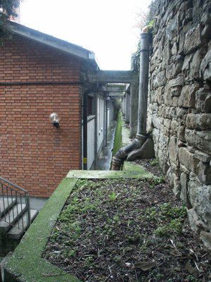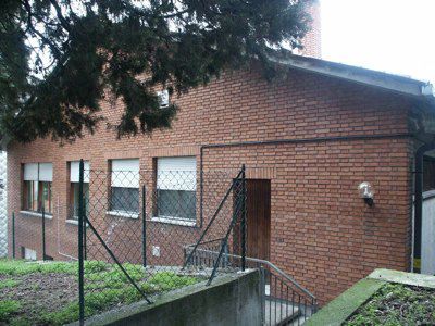 Il fabbricato risulta isolato su un lotto di pertinenza ricavato sul pendio che dal rione di Roiano sale sulle pendici del monte di Scorcola. L'edificio è costruito a ridosso di un pastino al limite nord del lotto; il giardino è ricavato su una serie di terrazzamenti esposti a sud e diversamente pavimentati a seconda dell'uso. Le funzioni scolastiche sono contenute esclusivamente al piano superiore dell'edificio, caratterizzato da ampie vetrate esposte a sud e da paramenti murari esterni in laterizio e calcestruzzo facciavista. Al piano inferiore, accessibile dal lato est e parzialmente seminterrato, si trovano alcuni vani tecnici e l'appartamento del custode. Le strutture portanti verticali e orizzontali sono in calcestruzzo armato, talvolta a vista; la copertura a falde è rivestita da un manto di coppi curvi rossi uso Trieste; sul lato nord una serie di contrafforti in calcestruzzo armato contribuiscono a reggere la spinta del muro in pietra che delimita il pastino del terreno confinante e ricavano uno stretto passaggio su cui si aprono le finestre dei locali di servizio della scuola.