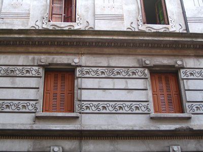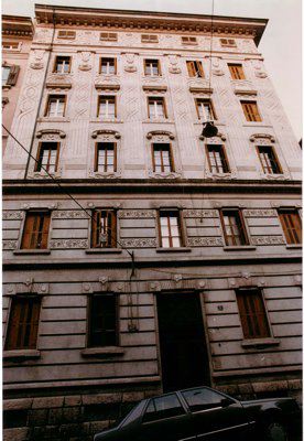 ELEMENTI ORNAMENTALI (esterno) Motivi floreali e geometrici sono caratterizzano gli intonaci di facciata. LESENE (esterno) Lesene con motivi geometrici incisi e decorazioni circolari a rilievo, che si sviluppano per un'altezza di tre piani. MENSOLE (esterno) Mensole a sostegno dello sporto di linda.
