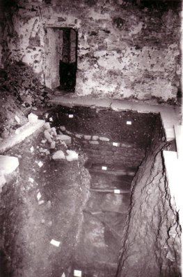 Durante le opere di ristrutturazione dell'edificio sito al civico n. 1 di Piazzetta S. Lucia eseguite nel 1996 sono stati condotti saggi geoarcheologici che hanno interessato i principali ambienti del pianterreno, in precedenza occupati da due esercizi commerciali. Le indagini hanno riportato alla luce strutture murarie messe in relazione con analoghi resti rinvenuti nella stessa Piazzetta S. Lucia e in via Ss. Martiri agli inizi del '900 e nel corso anni 70, nonché con le testimonianze archeologiche scoperte nel 1995 nell'ambito degli scavi realizzati all'interno di Palazzo Vicco (Curia Vescovile). L'analisi comparata dei manufatti ha consentito di ricondurre le strutture emerse dagli strati meno profondi a complessi trecenteschi, forse identificabili con l'ospizio e la chiesetta dell'Annunciata. Sotto il vano sinistro dell'edificio (Ex Ristorante Parangal) è stato inoltre individuato un muro in grossi conci di arenaria, sbozzati grossolanamente e legati con malta, interpretato come muro perimetrale di un'area cimiteriale datata al tardo medioevo, in parte distrutta dagli scavi per la rete fognaria realizzati negli anni settanta; entro il perimetro indagato sono state riconosciute quattro tombe. A una fase di frequentazione assai più antica è stata attribuita una struttura muraria, comune ai vani di entrambi gli ex-locali commerciali, la cui base è risultata insistere sulla crepidine di una strada di epoca romana. Il tratto di percorso stradale, portato alla luce in ottimo stato di conservazione, risulta pavimentato in lastre di arenaria irregolari e presenta una larghezza di 3,60m. Oltre alla crepidine meridionale, in corrispondenza del margine settentrionale del vano sinistrof è stata riconosciuta la crepidine opposta e un muro realizzato a margine della medesima. La diversa tecnica edilizia riscontrata nei manufatti posti ai lati del percorso ha permesso di distinguere strutture murarie di mero contenimento da altre riconducibili a edifici abitativi collocati in affaccio alla strada. In modo particolare, la raffinata composizione delle murature lato monte (conci squadrati legati con abbondante malta), insieme all'individuazione nel vano destro (Ex Pizzeria Antica mormorazione) di una falda di scarico ricca di malte, intonaci con decorazioni a girali e resti di contenitori ceramici per il trasporto e la conservazione delle derrate alimentari, hanno consentito di intuire la presenza di edifici signorili con annessi produttivi; l'epoca di dismissione, in base ai materiali rinvenuti, è stata datata al IV-V secolo d.C.