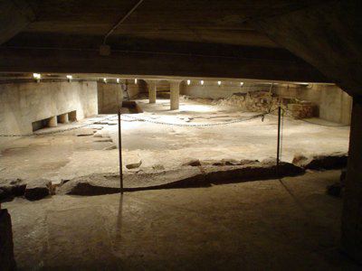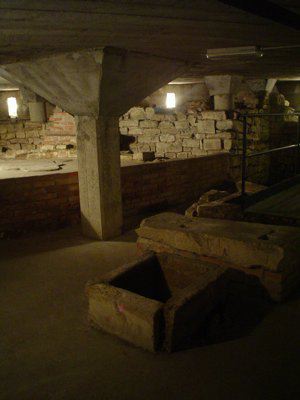 La basilica suburbana martiriale venne sostituita nel X secolo; quando questo edificio di culto fu abbattuto, nel 1784, il nome che identificava la zona fu attribuito alla via. La parte absidale venne scoperta già all'epoca del Rossetti, nel 1825, ma venne indagata compiutamente soltanto negli anni 1963-64. Si tratta di una basilica sorta in zona cimiteriale: a navata unica senza abside nella fase più antica (V secolo) con pianta a croce, determinata dall'erezione di due corpi laterali al presbiterio, nella fase successiva. Le sue dimensioni sono di 11 metri in larghezza e 30 in lunghezza e s'estende sotto la scuola magistrale Carducci. La parte più interessante sono i due strati di mosaici sovrapposti a 5 cm l'uno dall'altro; quelli più antichi, a motivi geometrici, sono a tessere grigie e bianche, quelli sullo strato superiore sono ricchi di policromia, hanno motivi vari, geometrici e fitomorfi. Inoltre c'è una serie di iscrizioni databili tra la fine del sec. IV e l'inizio del VI, che costituiscono i primi documenti relativi alla più antica comunità cristiana, che ci tramandano una ventina di nomi appartenenti a uomini di ceto medio e personalità rilevanti della Chiesa locale tra il V e il VI secolo, detta "sancta ecclesia tergestina". Forse in un primo momento la basilica assolveva la funzione di custodia delle reliquie di Giusto, e sede episcopale della città. Secondo la narrazione del martirio, il suo corpo venne sepolto qui, restituito dal mare, dopo l'esecuzione della pena capitale per annegamento.