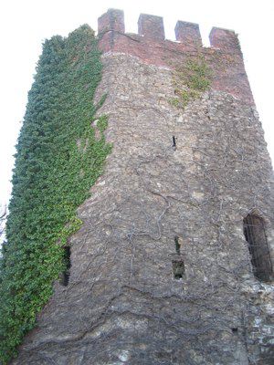 La torre presenta una planimetria a forma poligonale ed è aperta sul lato principale. Costruita in conci di pietra squadrata, è solcata da aperture a feritoia. La parte superiore voltata a botte e la merlatura, ricostruite durante il restauro del 1910, sono realizzate in mattoni per distinguerle dalla struttura originaria. L'accesso è chiuso da una cancellata in ferro.