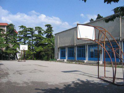 Il complesso che ospita la Scuola Elementare Statale 'Domenico Rossetti' e la Scuola Materna Comunale di San Sabba sorge su un ampio lotto delimitato da Strada Vecchia dell'Istria, dalla proprietà occupata dal Ricreatorio Comunale 'Nicolò Cobolli', da una proprietà privata costituita da abitazione e giardino e da Via Zandonai. La proprietà è delimitata su tutti i lati da un muro di cinta in conci di pietra, sormontato da una ringhiera metallica. Il terreno è sensibilmente acclive e l'altezza di tale recinzione segue l'andamento della strada. L'accesso principale all'area avviene in due punti da Via Zandonai, attraverso un cancello ricavato all'interno del muro di cinta e un piazzale antistante l'edificio aperto sulla strada; uno secondario è posto lungo la strada in salita che divide tale lotto da quello di pertinenza del ricreatorio. Il complesso è costituito da due corpi di fabbrica principali, a loro volta composti da volumi di dimensioni ed altezze differenti. Il primo, collocato più a monte, presenta una pianta a 'C' con un'ala allungata, ottenuta dalla connessione in pianta di diversi rettangoli, mentre il secondo è un rettangolo pressoché regolare leggermente inclinato rispetto la direttrice di Strada Vecchia dell'Istria. Il fabbricato a 'C' è costituito da tre piani fuori terra, mentre i volumi che si collegano nella parte terminale sono uno a due piani e l'altro a doppia altezza; il corpo più a valle è a due piani, ma in un tratto si eleva di un ulteriore livello. Tutti i fabbricati del complesso presentano la medesima logica compositiva, la stessa finitura esterna, ma sistemi di copertura diversa: piana con tetto anche calpestabile e parapetto in muratura e balaustra metallica nel corpo a 'C' e in quello più a valle, che contengono le aule e i vari servizi, inclinata a doppia falda nel volume a doppia altezza che ospita la palestra. La struttura portante verticale è in cemento armato e muratura in pietra e laterizio, quella orizzontale in laterocemento. L'ingresso principale all'edificio è collocato sul prospetto lungo Via Zandonai, mentre quelli secondari, di accesso ai locali di servizio e accessori, sono stati ricavati sui fronti che si affacciano sul piazzale interno, utilizzato anche come parcheggio per le automobili. Anche da qui è possibile accedere all'atrio centrale della scuola attraverso l'ingresso retrostante posto alla fine di una doppia rampa. In corrispondenza del volume più basso si sviluppa un piccolo giardino con giochi per bambini, mentre il fabbricato che ospita la palestra si apre su un campo da gioco all'aperto. Attorno ai due corpi di fabbrica si sviluppa un ampio sistema di verde attrezzato, disposto anche su terrazzamenti. Le facciate sono caratterizzate dai medesimi elementi compositivi anche se presentano una scansione e tipologie delle forature diverse. Lungo tutto il complesso si articola uno zoccolo in conci di pietra piuttosto regolari, interrotto in alcuni punti da gradini lapidei in corrispondenza degli ingressi all'edificio. La finitura superficiale di tutto il complesso è ad intonaco rustico, tinteggiato ocra chiaro, grigia nei volumi più bassi. I prospetti sono scanditi orizzontalmente da fasce marcapiano, che sottolineano la successione dei livelli e l'ubicazione degli ingressi nella parte centrale del fabbricato a 'C'. La scansione verticale, invece, è ottenuta dagli elementi in muratura che separano le aperture. Nel complesso si alternano serramenti di diverse dimensioni, tipologia e finitura. Il fabbricato principale a 'C' presenta diversi tipi di serramenti lignei, mentre al pianoterra questi sono stati sostituiti con infissi metallici. In più punti sui fronti le forature sono state tamponate con piastrelle in vetrocemento. Il volume della palestra è caratterizzato da serramenti metallici a tutt'altezza verniciati di colore azzurro scuro. Nel fabbricato più a valle gli infissi lignei originari sono stati completamente sostituiti con serramenti in metallo. Sono presenti tre targhe lapidee recanti incise le denominazioni delle Scuole. All'interno i diversi spazi si distribuiscono lungo un corridoio centrale, a partire dall'atrio d'ingresso principale; in posizione simmetrica si collocano i vani scala con gradini lapidei. La finitura delle superfici interne consiste in uno zoccolo lapideo ed un rivestimento ad intonaco tinteggiato di bianco. Il soffitto presenta la medesima finitura, mentre il pavimento è completato da piastrelle ceramiche quadrate. L'atrio di ingresso è caratterizzato da pareti rifinite ad intonaco con tinteggiatura tendente al marrone, zoccolo marmoreo e pavimento a piastrelle quadrate in marmo. Gli infissi interni sono lignei e tinteggiati di azzurro scuro, così come le balaustre metalliche dei vani scala e i corpi radianti collocati sotto le finestre.
