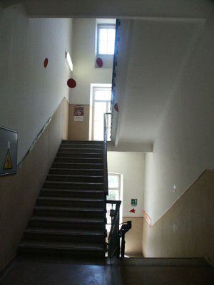 Lungo la Strada di Guardiella un muro in conci squadrati a corsi orizzontali di pietra arenaria , della stessa altezza del basamento dell'edificio, funge da contenimento del terreno adibito a giardino. Un marcapiano modanato in pietra bianca bulinata definisce il livello del piano di calpestio del piano terra. Un basamento in conci squadrati di pietra arenaria a corsi orizzontali corre lungo l'intero perimetro del fabbricato a protezione della porzione bassa delle facciate. Le restanti parti di facciata risultano intonacate in colore rosa chiaro, con l'interruzione di un marcapiano in pietra bianca posto al livello del davanzale delle finestre del secondo piano. Lesene ad intonaco grigio scandiscono verticalmente i ritmi della facciata e rafforzano gli angoli del fabbricato; il coronamento è costituito da un marcapiano modanato e da una linda aggettante finita ad intonaco. Gronde e pluviali sono in lamiera verniciata. I fori architettonici sono contornati da cornici in pietra bianca bulinata, con architrave modanato con gocciolatoio e piccole mensole in pietra. Un piccolo portico posto in corrispondenza di una rientranza dal filo di facciata sul prospetto ovest, protegge l'ingresso principale. Due pilastri e una trabeazione in pietra bianca incorniciano i varchi di accesso al portico, richiamando geometrie tipiche dello stile liberty. Un balcone di pertinenza dell'appartamento del custode sovrasta l'ingresso, con un parapetto in ferro battuto decorato. I serramenti vetrati di finestra, quasi tutti originali, sono doppi in legno massello verniciato, a doppia anta a quattro specchiature e sopraluce vetrato. Le porte di accesso sono in legno massello verniciato a doppia anta con specchiature vetrate protette da inferriate in ferro battuto. Gli infissi interni sono costituiti da porte in legno verniciato color crema a doppia anta con specchiature piane. I pavimenti degli spazi comuni sono costituiti da un battuto di cemento e graniglia. Le aule sono pavimentate in parquet disposto a spina di pesce. I paramenti murari interni sono rifiniti ad intonaco bianco con abbassamento in smalto murale colore beige. Le scale di accesso ai livelli superiori e la breve scala di raccordo tra i due corpi edilizi sono costituire da blocchi di pietra calcarea bulinata e parapetti in ferro verniciato con corrimano ligneo. I pianerottoli di interpiano sono pavimentati con piastrelline colorate esagonali in cotto.