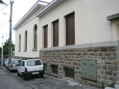 Edificio collocato nel rione di Servola di forma rettangolare, composto da diversi corpi a uno o due livelli fuori terra. Posizionato parallelamente all'asse stradale di via del Pane Bianco, è delimitato da un muro di confine con pilastri a sezione quadrata in cemento intonacato; un cancello in ferro verniciato di verde permette l'accesso al complesso scolastico. L'affaccio principale è posto sulla strada, quelli laterali sono rivolti verso la corte interna, dove si trova il giardino della scuola. La struttura portante verticale è in pilastri di cemento armato con muratura di tamponamento in laterizio; quella orizzontale presenta solai in laterocemento. La copertura è piana con rivestimento bituminoso. I pluviali sono interni alla muratura e la gronda è alloggiata nel cordolo aggettante di copertura. Le facciate sono omogenee, prive di elementi decorativi e con un rivestimento in intonaco liscio di colore ocra. Le aperture sono distribuite in modo regolare e non presentano cornici ad esclusione di alcuni elementi in pietra artificiale sul prospetto principale. L'ingresso principale è posto sul lato corto ed è costituito da una piccola loggia con aperture ad arco, copertura piana e cordolo aggettante. L'interno dell'edificio è distribuito regolarmente con un vano scale laterale composto da due rampe in pietra. Le stanze presentano un pavimento in parquet con tessitura a spina pesce e in linoleum negli ambienti recentemente oggetto di intervento; le pareti sono intonacate.