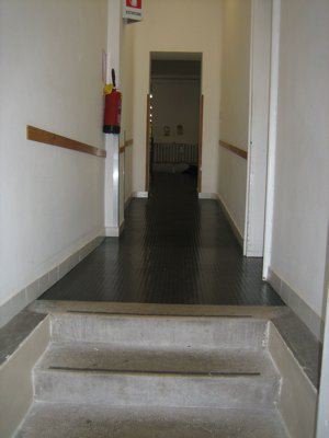 L'edificio è costituito da un unico volume con sviluppo planimetrico regolare. Il basamento è in lastre di pietra arenaria sbozzata di forma rettangolare, disposte regolarmente secondo corsi paralleli. Una fascia in intonaco bianco è posta a conclusione del basamento e si sviluppa lungo tutto il perimetro dell'edificio. I prospetti sono semplici, privi di elementi decorativi e sono rivestiti da uno strato di intonaco liscio di colore ocra. Le aperture che si trovano sull'affaccio principale sono incorniciate da riquadri in pietra artificiale con finitura grigia, mentre quelle poste sui prospetti secondari sono semplicemente voltate in intonaco. La fascia di coronamento è costituita da un cordolo in cemento rivestito in intonaco bianco leggermente aggettante; al di sopra è posto un parapetto. I serramenti, originalmente in legno, sono stati sostituiti in pvc bianco a due ante e tre svecchiature; gli avvolgibili in plastica sono di colore marrone scuro. L'ingresso principale si trova all'interno di una piccola loggia a base quadrata con aperture ad arco laterali e rivestita con un intonaco liscio di colore ocra; la copertura è piana con cordolo aggettante. Il portone d'ingresso, anch'esso sostituito, è in pvc bianco a due battenti e tre specchiature. Le grondaie ed i pluviali sono in lamiera e sono alloggiati all'interno della muratura. Il marciapiede esterno è in cemento; la restante parte del lotto è in battuto di cemento con alcune alberature e aiuole di piccola e media dimensione. I vani interni presentano un pavimento in parquet con tessitura a spina pesce; gli ambienti oggetto di recente intervento sono pavimentati in linoleum. Le pareti sono intonacate.